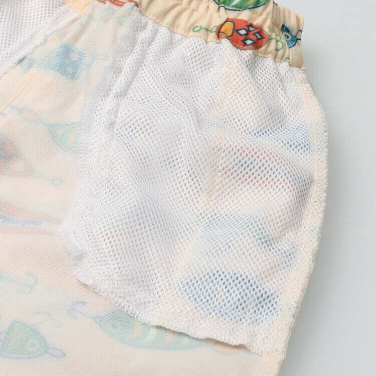 水陸両用お魚ルアー柄6分丈ハーフパンツ (アウトドア、水遊び、膝が隠れる位の丈、水着不可)
