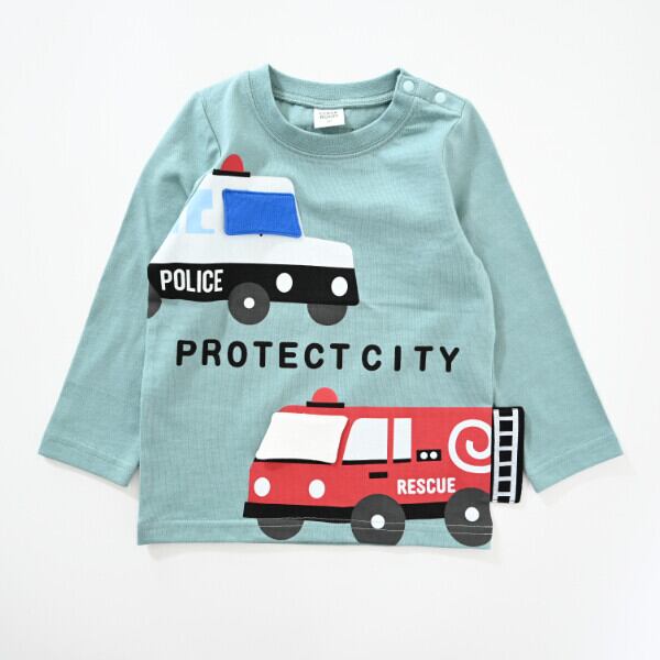 パトカーと消防車長袖Tシャツ